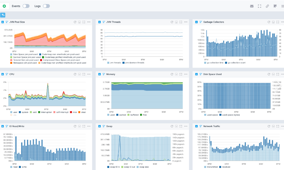 一个大而全的 monolithic 应用,集成了数据采集、存储、告警、可视化于一身。对传统IT设施(网络设备、VM、数据库)的监控支持非常好。